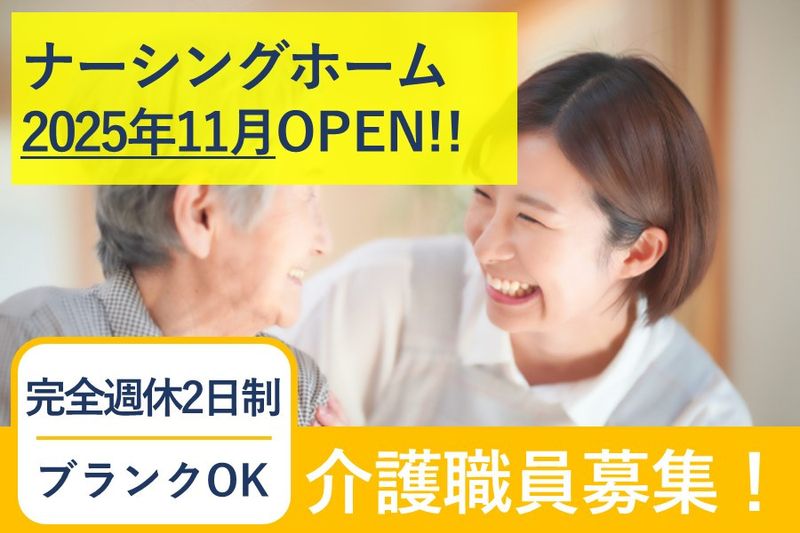 【アピールポイント】 2025年11月OPEN! ナーシングホームの介護職員募集! ●介護施設未経験OK! ●ブランクある方OK! ●研修制度やフォロー体制充実!