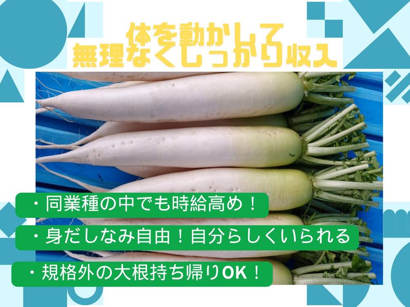 未経験の方歓迎!スキマ時間勤務と高水準の給与が魅力!規格外の大根も持ち帰りOK!