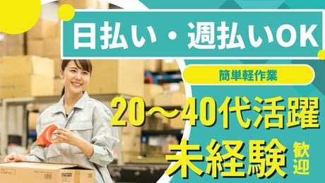 仕事内容 端末を使って集めた部品をまとめるシンプルな作業 ◎未経験から始めた方が中心に活躍中♪ ◎資格や経験は一切必要なし!! ◎日勤のみの勤務で夜勤がないので 生活リズムも安定しながら働けますよ♪ 端末を使って部品を集めてまとめるだけ♪ 単純操作なので初めての方でもスグに 使えるようになりますよ! わからないことがあってもフォロー体制が バッチリなので安心です◎ 部品の一つひとつは大した重さではないですが、 まとめて運ぶ時に多少重たく感じるかも!? それでも男女活躍している職場なので問題ナシ♪
