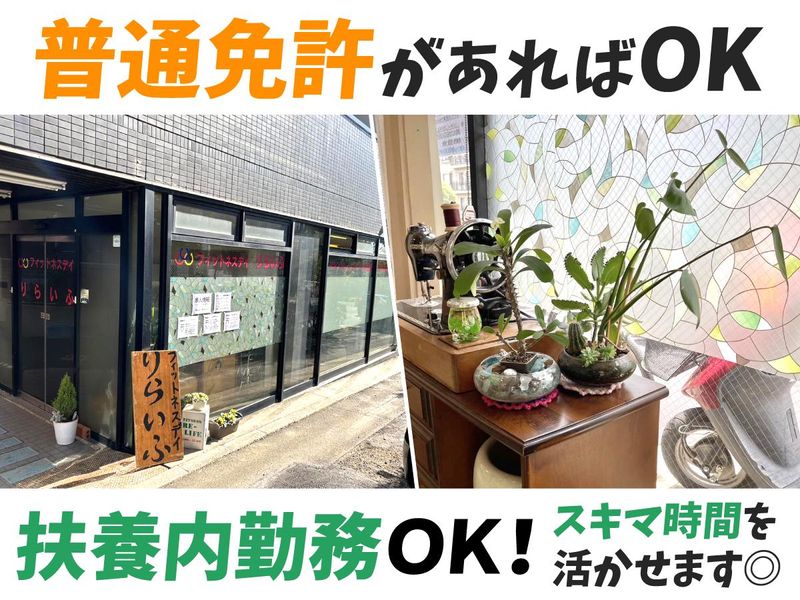 仕事内容 \1日1時間でもOK! 空き時間に働ける送迎ドライバー/ 株式会社りらいふが運営する 《フィットネスデイりらいふ》は、"介護" というよりも"健康づくり"に近い デイサービス施設。今回募集するお仕事は、 そこに通う利用者さんの送り迎えをする ドライバー職です。 =================== 【主な業務内容】 ▼ワンボックスカーで利用者さんの 送り迎えをお願いします。 ・朝のお迎え(7:45~8:45) ・昼前のお迎え(11:30~13:30) ・夕方の送り迎え(16:00~17:00) ▼ルート 西東京市内になります。 日によってルートは異なりますが、 基本は曜日ごとに決まったコースを走ります。 ▼入社後のサポート体制 覚えるまでは先輩が同乗して しっかりサポートします。 ▼運転する車は 普通免許で問題なく始められる、 2000CCのワンボックスカーです♪ ================ \この仕事の魅力/ ✅柔軟シフトで働きやすさ抜群 送迎の各時間は1~2時間のみ! 朝のみ・昼のみ・夕方のみもOK! 送迎が無い時間は帰宅して家事を… なんて事も可能です♪ ✅未経験でも安心スタート ドライバー職の経験は不要!普通免許が あればどなたでも始められるお仕事です。 運転時間も短いので気晴らしにも◎ ✅”ちょっとだけ働きたい”方にピッタリ 週2日・1h〜OK!扶養内勤務もOK! 「子育てが落ち着いたから、少しだけ外で 働きたい」「空いた時間に働きたい」 そんな方にピッタリの環境です。 ✅スタッフの声をご紹介 <主婦スタッフ(勤務1年目)> 「家が近いから応募しました。仕事がない 時間帯は家で家事を済ませるので メリハリができて良いです。」 <未経験スタッフ(勤務3年目)> 「サクッと働けるので続けられています。 利用者さんたちに会えるのも良い気晴らしです。」 ================ ⭐月1回のミーティングあり⭐ \スタッフ同士で気軽に情報共有 できる場です/ 毎月15日に、スタッフが集まって顔を 合わせる“ミーティング”を実施しています。 といっても堅苦しいものではなく、 日々の業務で感じたことや、対応の工夫 などをざっくばらんに話せる場。 ほかの事業所の仲間とも交流できる良い機会です。 参加は自由ですが、毎回30名以上が参加しています。 所要時間は17:45から30分程度。 もちろん時給のほか、会議費手当として500円を支給しています。 ================