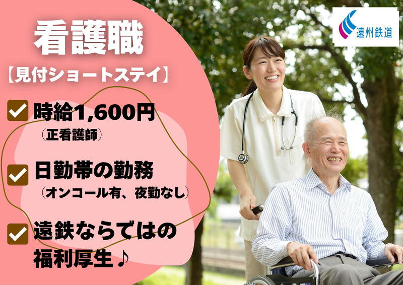 仕事内容 <仕事内容は…> 遠鉄グループが運営する ショートステイで看護業務です。 ▼具体的には… ・健康管理、内服管理 ・創傷の処置 ・食事、入浴、排泄などの介助 ・介護看護記録の作成、入力 ・機能訓練 ・ご利用者送迎 ≪一日の流れ(例)≫ 8:30 出勤、お出迎え 9:30 バイタルチェック、入力 10:00 機能訓練 12:00 食事介助、口腔ケア 13:00 休憩 14:00 翌日準備(配薬)、記録入力 16:00 送迎準備、フロア見守り
