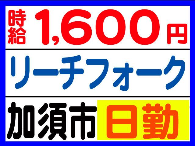 加須市/フォークリフトスタッフ大募集 高時給1,600円~/日勤/単純作業で安心 月収例29万円以上