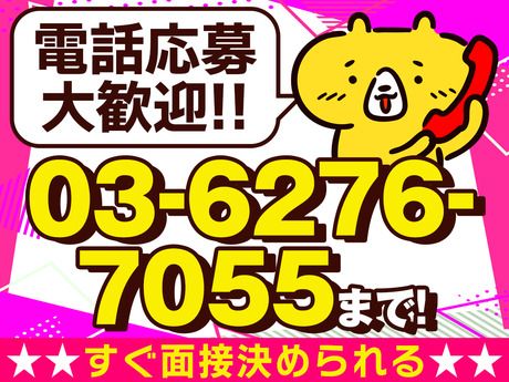 選考プロセス ◎WEB面接も可能! WEBからご応募いただいた方はWEB面接も可能です! お気軽にお問い合わせください。 【問合せ先について】 問合せ先:03-6276-7055 電話でのご応募も歓迎!(受付時間/平日9~17時) 受付はゼンコーリクルートセンターにて行っています。 その場で面接日時の設定もできてスムーズです。 日程が合えば当日も可能! 応募方法 まずはお気軽にご応募ください! 【お電話でのご応募も大歓迎!】 応募受付先電話番号はコチラ⇒「03-6276-7055」