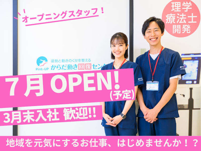 仕事内容 【 仕事内容 】 ■からだの動きチェック(AI測定) ⇒歩き方や座り方のクセをチェック。 ■カウンセリング ⇒お客様のクセに合わせた改善メニューを提案。 「これなら続けられそう♪」を一緒に見つけていきます。 ■トレーニングサポート ⇒提案メニューを習慣にできるように、 やさしくサポート! 楽しく、カラダを整えていきます♪ ■受付/事務 ⇒ご予約・問い合わせ対応など、 笑顔でご案内をお願いします! ■その他施設運営 ⇒イベント・販促企画 店内装飾・清掃 など ╭━━━━━━━━━━━━━━━╮ 未経験・資格なしでも大丈夫! ╰━v━━━━━━━━━━━━━╯ スタート前に本部でしっかり研修を用意!! 「からだ動き回復センター(Pint-UP)」の 考え方や実践内容、施設運営ノウハウまで イチから丁寧に学べます。(宿泊あり) << Pint-UPの推しポイント >> ―――働きやすさに自信あり!――― ⏩早朝・深夜の勤務はナシ!! ⏩勤務時間は最大8hまで♪ (※立ち上げ2ヶ月間のみ月20h程度) ⏩お休みは【木曜+日曜+祝日】で しっかりリフレッシュできます! ⏩年間休日は120日以上◎ ➤「プライベートもちゃんと大事にしたい」 そんなあなたにピッタリの働き方♪ ╭━━━━━━━━━━━━━╮ こんなやりがいがあります! ╰━v━━━━━━━━━━━╯ お客様が元気を取り戻していく姿を一緒に 見守れる、とってもやりがいのあるお仕事! 期間の決まりがないからこそ、 1人ひとりのお客様とじっくり 向き合えて、深く信頼関係を築けます⭐ ╭━━━━━━━━━╮ 安心の“同期入社”! ╰━v━━━━━━━╯ 今回は新施設のオープニングメンバー募集! なんと5〜7名の同期が一緒にスタート予定! 「知らない職場に1人で入るのって不安…」 「人間関係がゼロからなのは勇気いる…」 ―――そんな不安は必要なし◎ 研修も立ち上げも、みんなで 力を合わせて進めていきます!!