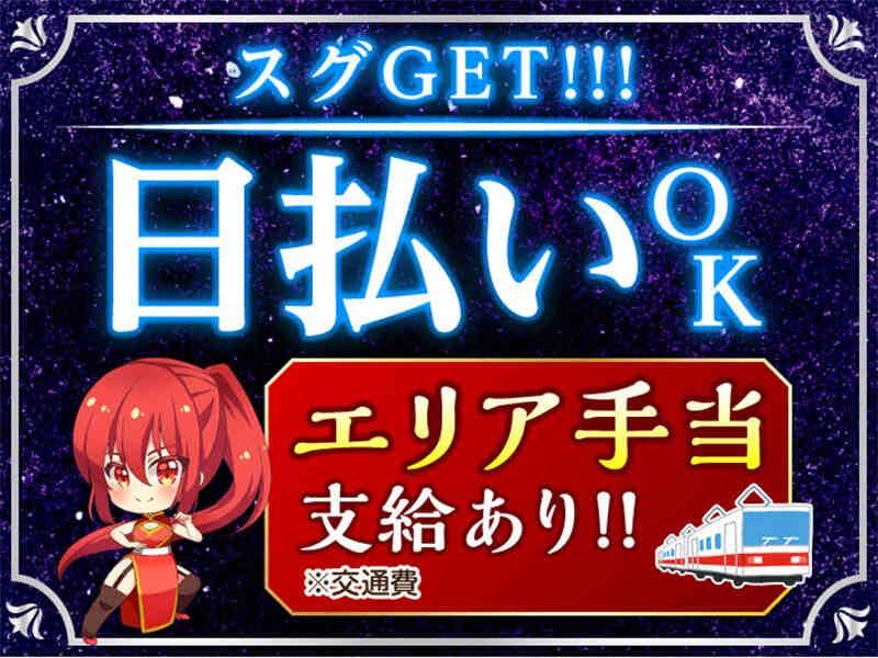 日給18,750円 給与詳細 基本給:日給 1万8750円 固定残業代:なし 【一律手当】 全員に一律で支払われる通勤・皆勤・家族手当金額:あり 全員に一律で支払われるその他手当金額:なし ★日払いOK ★交通費(エリア手当)支給 ★うれしい高日給! ◎土日2日間通し勤務で ⇒3万7500円Get! ◎3日間通し勤務なら ⇒5万6250円Get!
