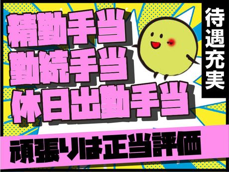 待遇・福利厚生 【福利厚生】 <具体的には> ●支度金3万円支給 ●精勤手当 ●勤続手当 ●休日出勤手当