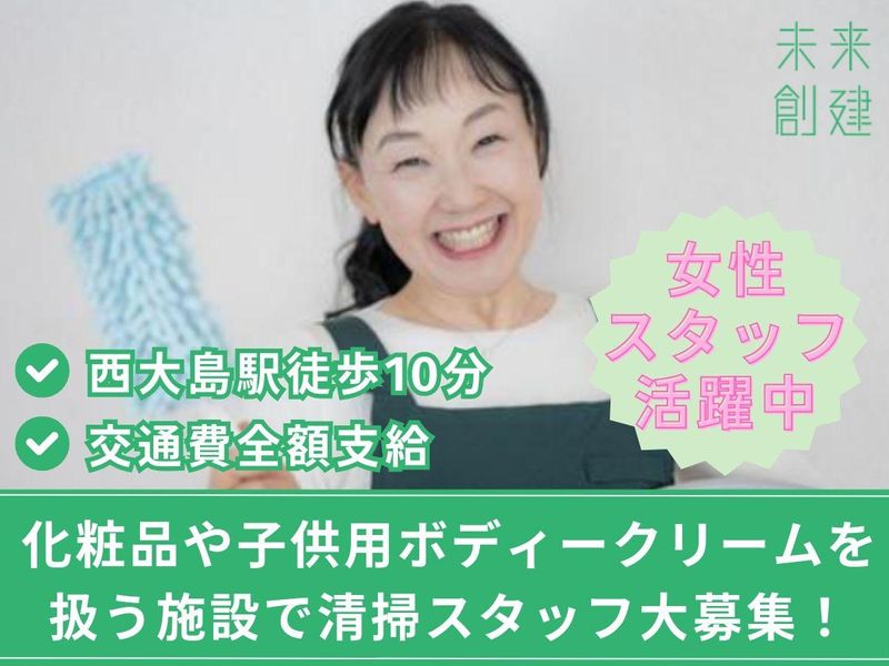 仕事内容 ◤ ̄ ̄ ̄ ̄ ̄ ̄ ̄ ̄ ̄ ̄ ̄ ̄ ̄ 化粧品や子供用ボディクリームを 扱う施設で清掃スタッフ大募集! _____________◢ ╲⭐お仕事内容⭐╱ ❏拭き掃き清掃(廊下や水回りなど) ❏ゴミ回収 など! ※エレベーター使用OK ※女子トイレ清掃あり ┏━━━━━━━━━━━━┓ ⭐20代~60代の女性活躍中⭐ ┗━━━━━━━━━━━━┛ ✨主婦さん・女性活躍中❗❗ 平日週2日~OK、時間固定なので 「家事の合間」「子育てと両立」等OK 自分の時間を有効活用して、 マイペースにコツコツ働けます♪ ✨体を動かして働けるので 運動不足解消にも最適です◎ 終わった後は気分爽快!