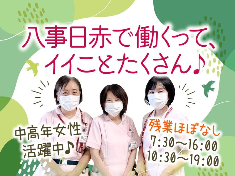 職場環境 【認知度の高いあの有名病院♪】 ■駅直結なので通勤便利! ■閑静な高級住宅街「八事日赤」で勤務 ■夏は涼し~く、冬は暖か~い! 一年中温度管理された快適な環境で 体に負担なく勤務可能! ■転勤ナシ ■休憩スペースやお昼を食べる場所あり ■お弁当持参OK 喫煙所:なし(敷地内全て禁煙)