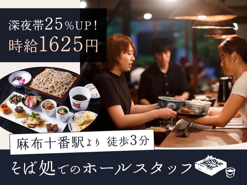 仕事内容 \ Wワークや学校帰りにも柔軟に対応 / お昼から深夜(~4:00)までの 幅広いシフトあり◎ 通常時給1300円で 「深夜帯は25%UP」の時給1625円! ◆ 未経験OK!ブランクOK ◆ 絶品まかないあり ◆ グループ店の社割あり(最大30%OFF) ◆ 学生・フリーター・主婦さん活躍中! ◆ 国内外グループ90拠点を展開 |FONZグループHP https://www.fonz.jp/recruit/ //////////////////////////////////////// 「麻布 川上庵」は東京・麻布にある モダンでおしゃれな そば処。 自家製蕎麦と旨酒が楽しめるお店です。 伝統的な技法を取り入れた江戸前そばは 国内外からのお客様からも大人気! 落ち着いた空間で、 食事を楽しんでいただけるよう サービスの質にもこだわっています。 【 仕事内容 】 あなたにはホール業務をお任せします。 お客様のご要望に応じた 臨機応変な対応が求められますが 先輩が丁寧にサポートします! 全くの未経験の方もご安心ください◎ 具体的には ・お客様のご案内、オーダー対応 ・配膳、下膳、テーブルセッティング ・レジ対応、会計サポート ・ドリンク作りや簡単なドリンク補助 ・開店、閉店準備 ・清掃や片付け作業 ※希望によっては、 ホールとキッチンの両方を経験できる 可能性もあります。 //////////////////////////////////////// ◆ 無理なく働ける環境です お昼~深夜まで幅広く勤務可能! シフトもあなたの都合に合わせられます◎ 「ランチライムのみの主婦さん」 「ディナーだけ働く学生さん」 「深夜で稼ぐフリーターさん」など 様々な方が活躍中です。 シフトは完全自己申告制で、 2週間ごとに提出します。 自社システムで提出できるので 簡単にスムーズに申請できます! ◆「食」が好きな方、必見の研修あり スタッフの一人ひとりの意欲を もっと伸ばせる環境でありたいと、 さまざまな研修をご用意しております。 体験したい研修があれば、 ぜひご参加ください。 ・和食講習 ・蕎麦打ち講習 ・日本酒/ワインマネージャー養成講座 ・日本酒酒蔵見学 など