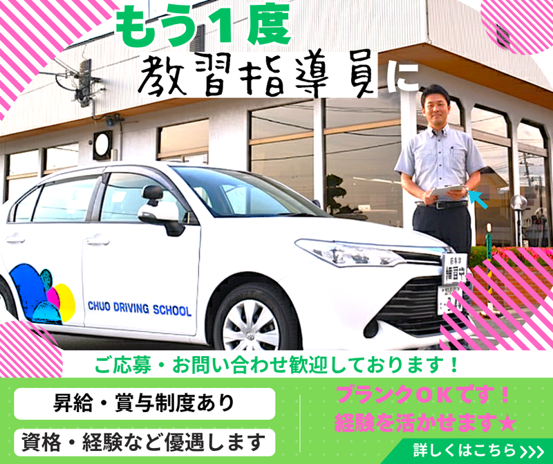 仕事内容 *‥‥*‥ アピールポイント ‥*‥‥* ✨ その資格と経験、 当校で正当に評価します! 給与は経験・能力を最大限考慮! ✨ 年間休日105日&残業月平均20時間! プライベートの時間も大切にできます ✨ 普通二種や独自設備 「スキッドランド」も! 指導員として更にスキルアップできます ✨ 「褒めて伸ばす」がモットー。 あなたの指導方針を尊重します *‥‥*‥‥*‥‥*‥‥*‥‥*‥‥* ┏────────────────┓ あなたのキャリア、次のステージへ。 安定した環境で、 経験を存分に活かしませんか? 長年培ってきた指導員としての経験を、 もっと働きやすい環境で、 もっと正当な評価のもとで 活かしたいとお考えではありませんか? 当校は将来的な世代交代も見据え、 新たな中核メンバーとなる方を 募集しています。 あなたの力を、 ぜひ当校で発揮してください! ┗────────────────┛ ⭐具体的なお仕事  ̄ ̄V ̄ ̄ ̄ ̄ ̄ ̄ ̄ ̄ ̄ ̄ ̄ ̄ ̄ ̄ ̄ ̄ ̄ ご経験や保有資格に応じて、各種教習・ 講習の実施をお任せします。 即戦力としてご活躍ください。 ✅技能教習・学科教習:普通車から 普通二種、大型二輪まで幅広い教習に 携われます。 ✅各種講習:独自の雪道練習コース 「スキッドランド」を活用した講習など、 専門性を高められます。 ✅その他:スクールバスの送迎や窓口業務 など、教習所運営に関わる業務。 ⭐ ブランクのある方も安心 ───────────── 「資格は持っているけど、現場を離れて 長い…」という方もご安心ください。 指導の勘を取り戻せるよう、入社後に 丁寧な研修や同乗サポートを行います。 当校のやり方に慣れるまで、先輩指導員が しっかりフォローします。 ⭐ 職場の環境 ─────────── 20代から50代まで、幅広い年齢層の指導員が 活躍中です。 「親切・丁寧・優しく、褒めて伸ばす」を モットーに、穏やかな雰囲気の中で それぞれの指導員が自分のスタイルを 大切にしながら働いています。 ⭐ 先輩社員インタビュー ────────────── ▼Aさん(34歳・入社2年目) 前職:他県の自動車学校 指導員 前職は残業が多く、休日も不規則で、 家族との時間を十分に取れないことが 悩みでした。当校へ転職した一番の決め手は その働きやすさです。 残業が少なく、休日もしっかり確保できる ので、子どもの行事にも参加できるように なりました。また、「褒めて伸ばす」という 指導方針も自分に合っていると感じます。 ただ技術を教えるだけでなく、生徒さんに 寄り添いながら運転の楽しさを伝えられる 環境は、指導員としてのやりがいを 改めて感じさせてくれますね。 ▼Bさん(45歳・入社1年目) 10年のブランクを経て復帰 子育てが一段落し、もう一度指導員の 資格を活かしたいと思いましたが、 10年以上のブランクに不安を感じて いました。面接で正直にその気持ちを 伝えたところ、「大丈夫、しっかり サポートします」と温かい言葉をいただき、 入社を決意。 入社後は、ベテランの先輩がマンツーマンで 指導の勘を取り戻す手伝いをしてくださり、 安心して再スタートできました。 家庭の事情にも理解があり、子育てと両立 しながら働ける環境に感謝しています。 ⭐ 採用担当からメッセージ ───────────── 指導員という仕事の厳しさもやりがいも 知っている、あなたからのご応募を お待ちしています。 当校は、社員一人ひとりが安心して 長く働ける環境づくりに力を入れています。 待遇や働き方、キャリアについて、まずは 一度ざっくばらんにお話しませんか? ご連絡を心よりお待ちしております! ─────【当社について】───── 昭和39年に設立された歴史ある自動車 教習所です。地域に根差し、 「一生無事故」のドライバー育成を通じて、 交通安全に貢献しています。
