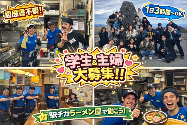 仕事内容 ||◤久留米らーめん道 麺志 本店◢||  ̄ ̄ ̄ ̄ ̄ ̄ ̄ ̄ ̄ ̄ ̄ ̄ ̄ ̄ ̄ ̄ ̄ ̄ お昼の店内スタッフを増員募集します! 働きやすさ&スタッフの仲のよさも抜群✨ ―――――――――――――――――― 「家庭との両立を大切にしながら、 自分らしいペースで働きたい── そんな方にぴったりの場所があります。」 【麺志】には、誰もが心地よく働ける理由がたくさん♪ ⭐明るく過ごしやすいけれど、無理な空気はゼロ◎ ⭐仲良しだけれど、適度な距離感もキープ◎ ……だから、人間関係のストレスもほとんどありません! ||◤実際にスタッフからこんな声が…!◢||  ̄ ̄ ̄ ̄ ̄ ̄ ̄ ̄ ̄ ̄ ̄ ̄ ̄ ̄ ̄ ̄ ̄ ̄ ̄ ̄ 「人見知りの私でも、気づいたら自然と輪の中に入っていました!」 「育児の話で共感してもらえるのが、本当に心強いんです♪」 ⏩20代~60代まで、幅広い年齢層がのびのび活躍中! ⏩お子さんの急な発熱や学校行事にも、みんなでフォローし合える環境◎ ⏩保育園の情報交換や、先輩ママへの相談もしやすい雰囲気♪ 家事も育児も大切にしながら、 「少しだけ働きたい」「しっかり稼ぎたい」 どちらも叶えられます! ========== ▼とってもカンタンなお仕事です▼  ̄ ̄ ̄ ̄ ̄ ̄ ̄ ̄ ̄ ̄ ̄ ̄ ̄ ̄ ̄ ̄ ●お客様のご案内、配膳、テーブルの片付け ●盛り付けなどのシンプルな調理補助 ⇒初めてでも覚えやすい内容ばかりです♪ ✅オーダーは《食券制》だからレジや注文ミスの心配なし! ✅まずは明るく「いらっしゃいませ」からスタートすればOK♪ ✅丁寧な研修とサポートで、ブランクがある方も安心◎ 「久しぶりの仕事で不安…」 「包丁が得意じゃないけど大丈夫?」 そんな方にも、スタッフ全員でしっかりフォローします! ”できることから少しずつ”で大丈夫です✨ ■■■■■■■■■■ ⭐嬉しいポイント⭐ ■■■■■■■■■■ ➰家事・育児と両立しやすい環境! 勤務時間は《10:00~15:00》の安心シフト! 朝は保育園へ送ったあとに出勤、 夕方のお迎えも余裕うをもって行けます♪ 学校行事やお子さんの突然の体調不良など、 急なお休みにも臨機応変に対応していきます! ➰まかないでお腹もハッピーに! ラーメン・ごはん・替玉が なんと《1回200円》で楽しめます! 「気づいたら毎回頼んじゃう…」という声も多数♪ ※美味しすぎて食べすぎ注意です(笑) ➰昇給は成長や頑張りをしっかり見て判断します! シフトにたくさん入ってくれたり、 焼きめし・替え玉・ラーメン作り・スープ作りなどを しっかり勉強・練習して、安心してお客様に 提供できるレベルになれば昇給のチャンスあり◎ また、シフトに積極的に入ってくれる方は ボーナス支給の対象になります✨ 「もっとできるようになりたい」「お店に貢献したい」 そんな気持ちを、お給料でちゃんと評価するお店です! ■■■■■■■■■■■■■■■■■■■■■ ⭐久留米らーめん道 麺志ってどんなお店?⭐ ■■■■■■■■■■■■■■■■■■■■■ SNSやテレビでも取り上げられる、地元で人気のラーメン店! これまでに、たくさんのお客様に支えられて \✨おかげさまで11周年を迎えました✨/ これからも、素材にこだわり、 心のこもった接客でおもてなし。 「元気になれる一杯」を目指して、 一杯一杯に想いを込めてつくっています!