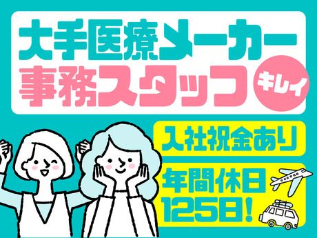 【事務経験者歓迎★大手メーカーで書類作成など♪】お祝い金3万円支給!年間休日125日♪月収20万円~