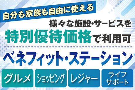 【保険制度】 雇用保険、労災保険、健康保険、厚生年金 待遇・福利厚生 【福利厚生】 ・社会保険完備 ・交通費全額支給 ・バイク通勤OK(ガソリン代の補助あり) ・有給休暇 ・制服貸与/制服での通勤OK ・社員食堂あり ・仕出し弁当あり ・屋内禁煙(屋外に喫煙場所あり) ・結婚祝金、出産祝金、扶養こども手当、入学祝金、退職金制度などの福利厚生が充実(規定) ・紹介キャンペーン ※ご紹介くださった方1名につき5万円を進呈(規定) 【ベネフィット・ステーションの利用が可能】 ベネフィット・ステーションとは、 様々なシーンでご利用いただける 総合型福利厚生サービスです。 映画鑑賞やホテルディナー、宿泊施設 などの余暇・レジャー関連をはじめ、 日常で使えるフィットネスや 育児・介護支援、ライフサポートなど 約140万件以上の幅広いメニューを お得な価格で利用できます。 <サービス例> ・全国40,000以上の宿泊施設 ・全国30,000店舗以上の飲食店 ・全国約7,700ヶ所のスポーツクラブ など スタッフさんはもちろん、ご家族の方もお好きなだけ利用できます。