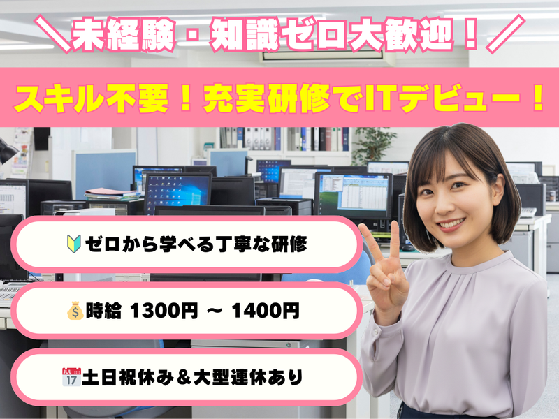 PCスキル不要!充実研修でITデビュー✨