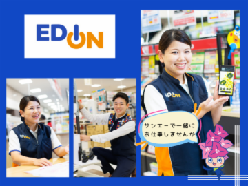 仕事情報 ● 仕事内容 エディオンでは家電量販店スタッフを募集しています!家電量販 店の中でエディオンは沖縄県でトップクラスのシェアを誇ってい ます。お客さまに合った、家電製品を接客を通して選んでいき、 お客さまとの信頼関係を作ることができます。アルバイトやパー トが初めての方でも安心して初めていただけます。 未経験でも大歓迎! サンエーでは今までにアルバイトやパートの経験がない方でも大 歓迎!経験豊富なベテランスタッフが丁寧に仕事を教えますので 全く心配はいりません。新しいことを始めるときは誰もが初めて からのチャレンジです。勇気を出して最初の一歩を、私たち サンエーで一緒に踏み出しませんか? 手厚い待遇も魅力です サンエーではパートナー社員でも手厚い制度がたくさん!特に パートナー社員のみなさんに好評なのが産休・育児休業制度。 サンエーでは家庭と育児を両立できるよう、働く女性を応援して います。そのほか、正社員への公募制度や、社会保険も完備して います。※アルバイトは一部待遇が異なります 長く働き続けられる秘密 サンエーは長く働き続けているパートナー社員、アルバイトが多 く在籍しています。その秘密は社員も含めたサンエースタッフ全 員がお互いをカバーしあって協力しながら働いているから。困っ たときはお互いさま。そんな思いやりの心をもって仕事をしてい るから、家事や育児と両立しながら長く働き続けられるんです。 サンエー企業紹介 私たちサンエーは地域に密着した総合小売業を展開しています。 食料品や住居関連用品、衣料品や外食、コンビニエンスストア など、様々なスタイルの店舗を展開しながら、長く沖縄の皆さま に愛されるお店作りをしてきました。これからもこの総合力を生 かし、信頼される企業を目指してまいります。