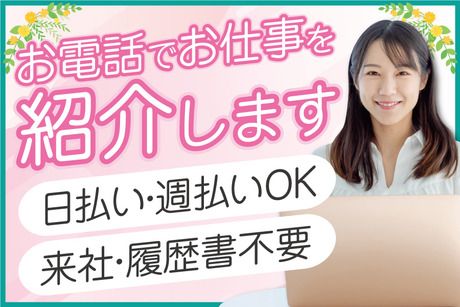 選考プロセス 平日10~19時の間のWEB応募には 応募確認後スグに入力頂いた電話番号に06-6225-8324から連絡します。 その際にシフトや開始日等の希望をうかがい、お仕事を紹介します。 ※連絡時にご不在の場合は携帯番号を入力頂いている場合はショートメッセージをお送りします ※土日祝や10~19時外の応募は翌営業日に連絡します 【問合せ先について】 問合せ先:06-6225-8324 ☆不明な点やもう少し詳しくお仕事の確認をされたい場合などは お気軽にお問い合わせください。 ●弊社営業時間:平日10~19時 ※営業時間外でも対応可能な場合もあります。 応募方法 来社&履歴書不要! 必要事項を入力の上、【応募する】ボタンよりご応募下さい。 電話での応募も受付中! お急ぎの方は下記番号よりお電話をお待ちしております。
