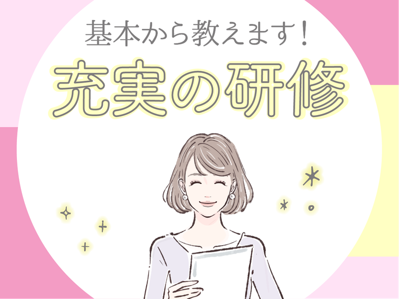 職場環境 気さくなスタッフが多く、適度に会話もあって明るい雰囲気の職場です。わからないことはすぐに質問でき、先輩たちも優しく笑顔で答えてくれるので居心地の良さは抜群◎個人のペースに合わせた研修で未経験でも安心してスタートできます* 喫煙所:喫煙所あり(屋内)