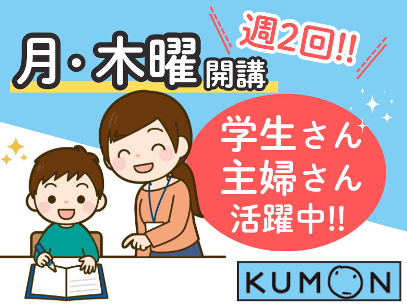 仕事内容 公文式で一緒にサポートをしてくれる 教室スタッフを募集します! 週2回の短時間なので 家庭・学業との両立も◎ スキマ時間で働きませんか⭐ ―…―…―…―…―…― 仕事内容 ―…―…―…―…―…― ◆教材の採点 など 解答書を見ながら行うので、 未経験の方や久しぶりの パート復帰の方も安心です♪ 子どもたちの成長を見守り感じること、 「できた!」の笑顔が やりがいに繋がります。 一緒に教室を盛り上げていきましょう! ―…―…―…―…―…― 公文式の特徴 ―…―…―…―…―…― KUMONでは算数・数学、英語、国語の 3教科を学習できます。 黒板を使った一斉授業ではありません。 学年関係なく、一人一人に合わせた 無理なくスラスラできる教材から始まり、 自分の力で100点を積み重ね、 やがては学年をこえた学習を 自学自習で進んでいきます。 自信と「考える力」を育みながら、 高い基礎学力と学ぶ方法と 姿勢を身に付けます。 ―…―…―…―…―…― 仕事のやりがい ―…―…―…―…―…― 生徒さんの成長を支えるお仕事。 日々、間近で子ども達の成長を 感じられます。 「子ども達の成長に寄り添いたい」 という方にはピッタリのお仕事です! 子どもが好きで、 成長を一緒に喜べる方の ご応募をお待ちしております!