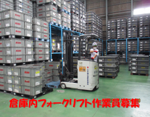 募集背景 業務量増加により人員補充 ATG001 仕事内容 倉庫内作業員(フォークリフト業務)募集! 当社の現場作業スタッフとして主に下記の業務をお任せ致します。男女ともに活躍中! 1、製品の入出荷及び仕分け作業 ・自動車・トラック部品の入出庫、並びに在庫数量の確認作業を行って頂きます。 ・軽作業となりますので、男女ともに活躍出来ます。充実な研修を用意してます! ・先輩が実践誘導するので、実務未経験者の方でも安心して働ける環境です! 2、フォークリフトによる荷扱い作業 ・自動車・トラック部品、住宅建材の入出庫及びトラックの積み降ろし作業を行って頂きます。 入社後は、『製品の入出荷及び仕分け作業』をして頂きます。社内のフォークリフト教育を受けて頂くと『フォークリフトによる荷扱い作業』に従事して頂く様になります。