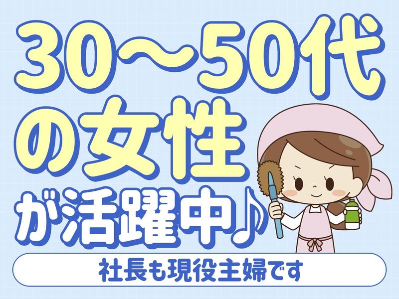求めている人材 30~50代の女性が活躍中です! (社長も現役主婦です) 東灘~中央区にお住まいの方が多数! 移動中の車の中では みんなでおやつをつまんだり 和気あいあいとお話しています。 ほっこりやさしい雰囲気♪ 1現場3~4人ぐらいで行います。 ◆お仕事を大体覚えられて スタッフに教えたりできるようになったら リーダーに!