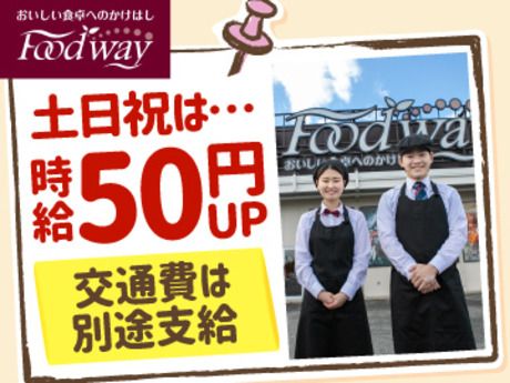 職場環境 【従業員構成】 20代・30代・40代・50代・60代の男女が活躍中! ▼みんなに聞いたフードウェイの魅力POINTをご紹介します♪ (1)時給が高めで稼ぎやすい! (2)シフトの融通がきく♪ (3)日数・曜日で時給がUPする! (4)社割で家計が大助かり♪ (5)研修が丁寧で未経験でも安心◎ 【職場の雰囲気】 にぎやかな職場 協調性がある 立ち仕事 アットホーム お客様との対話は少ない 初心者活躍中 力仕事が少ない 自分の都合に合わせやすい 知識、経験不要