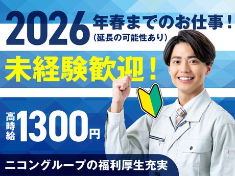 <高時給1300円>2026年春迄!土日祝休みで働きやすい♪経験・スキル不問!充実環境で製造デビュー