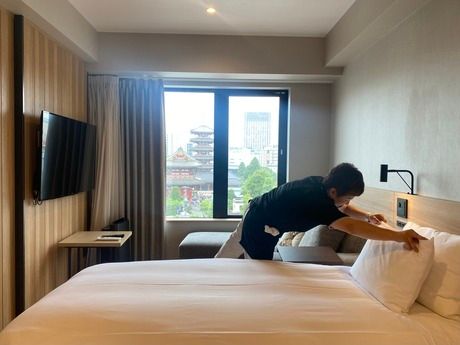 仕事内容 仕事内容について ホテルの客室清掃をお任せいたします。 【具体的には】 ・タオル交換 ・ゴミ回収 ・ベッドシーツ交換、ベッドメイク ・備品補充 等 基本的には30分で1室の清掃をお任せします。(おおよそ4時間で8室程度) チェックインするお客様を想い、快適に過ごせるお部屋を準備してくださいね! 連泊のお客様が中心で、1週間以上滞在されるお客様もいらっしゃいます。 *・・・・・・主婦さん活躍中!・・・・・・* 2023年築のホテルなので、設備も内装も清潔感があり、気持ちよく仕事できます。 体を動かしながらテキパキとしたお仕事が得意、チームワークが得意な方にピッタリ! 近隣に幼稚園・保育園があり、「お迎えまでの間に働きたい」という理由から主婦さんが中心となって活躍中です! 子育て世代が多いので共通の話題が多く、スタッフ同士、仲が良いのが魅力のひとつ♪ 基本的に接客はありませんが、お客様とすれ違う際には、笑顔で挨拶が出来ればOK! 接客にも興味がある方には、フロント業務や館内巡回もお任せします。(時給UP) *・・・・・・OMO3浅草について・・・・・・* 2023年7月31日開業の当ホテルは〈テンションあがる「街ナカ」ホテル〉をコンセプトとした新感覚のホテルです。 その街の思いもよらない魅力に出会い、知らず知らずのうちに街まるごとお気に入りになってほしい、という想いがあります。 周りと意見を出し合いながら変化を起こしてみたい、チームで一つの事を成し遂げる事をやりがいに感じる方にはピッタリの職場です。 「お客様に喜ばれるにはどんな会話をしたらいいか?」そんな風に考えられると、星野リゾートの社風にマッチします。 画一的な事だけではなく様々な事をやってみたい、チャレンジしたい方に是非ご応募いただきたいです。 【HP】https://hoshinoresorts.com/ja/brands/omo/