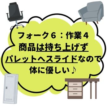 仕事内容 ◆◇お仕事内容◇◆ コクヨ製オフィス家具(ロッカー・デスク・ソファー・小物部品など)を扱う倉庫内作業です。 【具体的には…】 ・フォークリフトでのトラック荷卸し ・ハンディ端末の指示に従い、指定場所へ格納 ・出荷時のピッキング作業 └ 重量物は持ち上げず、パレットへスライド ・ラップ巻き作業あり ・出荷場所までフォークリフトで移動 ※全体の約6割がフォークリフト作業です ◆◇このお仕事のポイント!◇◆ 【高時給1,700円×安定収入】 フォークリフト作業が中心だから高時給! 残業時は時給2,125円で、月収アップも目指せます。 交通費支給&週払い相談OKで、安定して稼げる環境です。 【フォーク中心で体の負担少なめ】 作業の6割以上がフォークリフト作業。 重量物も「持ち上げずスライド」が基本なので、 腰や体への負担を抑えて働けます。 【シンプル作業&指示通りでOK】 ハンディ端末の指示に従って作業するだけ。 複雑な判断や難しい作業はなく、 フォーク経験があればすぐに慣れていただけます。