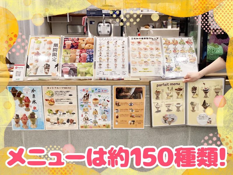仕事内容 ☆土日祝は時給1300円! ☆週2~3日OK! ☆未経験・経験者どちらもOK! ☆20代多数活躍中♪ <具体的には> ・接客 ・レジ ・簡単な調理(ソフトクリームやクレープを作ります) ・準備や片付け作業 <1日の流れ> ・15:30~16:00 仕込み作業 クレープの生地づくりや、 クレームブリュレ用のカスタードの仕込みなど。 ・16:00 お客さんがご来店 マニュアルに沿ってクレープやアイスを作って下さい♪ フルーツはオーダーが入ってからカット。 フルーツナイフで梨の皮を剥いたり、メロンを切ったり。 ・23:00〜24:00 締め作業 レジの清算 洗い物 モップがけや、テーブルと鏡の掃除など お客さんがいない時間は、備品のチェックや掃除をします。 おしぼりにイラストを描いたり、 お店の細部までこだわっています♪