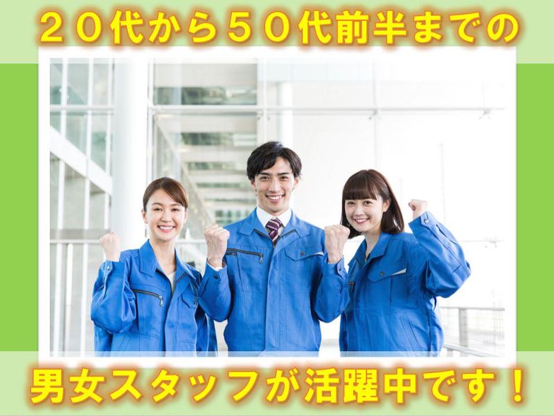 求めている人材 ★経験・学歴・年齢一切不問! ★未経験の方も歓迎! ★組立・検品・梱包などの 軽作業経験がある方歓迎! ★異業種からの転職も歓迎します! ★20代から50代前半の男女スタッフが活躍中です!
