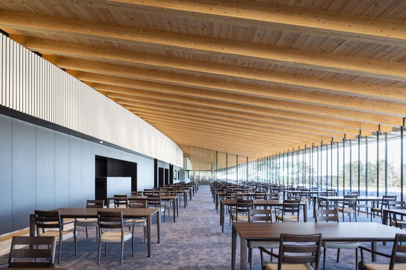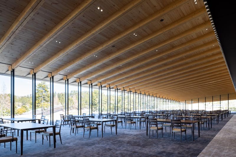 職場環境 開放感あふれるガラス張りのレストラン