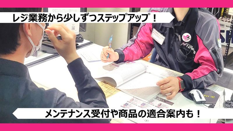 仕事内容 【髪型や髪色は自由!】 【接客業経験者歓迎】 【オートバイ好き歓迎!】 オートバイ用品総合企業のナップスです! 〉https://shops.naps-jp.com/〈 【おすすめポイント】 ★髪色や髪型は自由。個性出して働けます! ★オートバイに乗っている方は 知識を生かしながら業務に従事いただけます! ★オートバイをお持ちの方はピットの個人利用OK! 自分のバイクを最高のコンディションに。 ★経験でも歓迎。OJT(業務をしながら)、業務習得をサポートいたします 【仕事内容】 ヘルメットやジャケット等のアパレル、消耗品やカスタムパーツ他、 オートバイ用品の接客/販売、適合相談 ■オートバイ用品の販売/接客 ヘルメットの販売(商品説明や頭部計測)やジャケット/パンツのご案内 バイクパーツの適合案内(マフラーやレバーなどのカスタムパーツ) 他 ■作業受付 修理やパーツ交換にかかる案内/相談対応 受付書の作成 他 ■オンライン販売の出荷対応 商品の在庫確認/商品の梱包と出荷 ■売り場管理 店頭在庫の補充/商品の発注 ■レジでの接客/販売 ■変更の範囲 会社の定める範囲 レジ業務から始まり、徐々にステップアップで業務をお任せしていきます! 【勤務時間】 以下の時間内で週2日・7h~ ご相談可能です! ■平日 10:15~20:00 (休憩75分) ■土日/祝日 9:45~20:00 (休憩75分) (完全週休2日制/シフトにより決定) ※開店時間は店舗によって異なる場合がございます 【一日の仕事の流れ】 10:15|出勤・開店準備 10:30|勤務開始(午前中は車両整備の受付が多い傾向) 14:00|お昼休憩 15:00|午後業務(アパレル関係や消耗品適合のご案内) 17:30|夕方休憩(75分休憩を、昼:60分 夕方:15分で分ける方が多いです) 19:30|閉店準備(レジ締め準備、ショップリセットなど) 20:15|退勤 【スタッフの声をご紹介!】 ■スタッフKさん(20代男性) 入社後は販売職に就き、商品知識をはじめ気づきや発見を繰り返しました。そして3年が経過した今は部門のリーダーになりました。売り上げはもちろん大事にする一方 で、お客様のニーズに沿った提案をして喜んでいただけたときには一番やりがいを感じます。 ■スタッフMさん(40代女性) 子育てがひと段落してから、「バイクの免許を取ろう!」と思い立ちました。そのタイミングでナップス店舗が自宅 近くにできたので、「バイク関係のお店で働いたら少しはバイクがわかるようになるのでは…」と思い応募しました。知識がない状態の入社でしたが、今はお客様へ自分の経験 を踏まえたアドバイスができるようになりました。