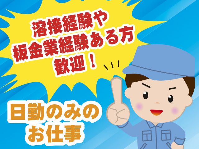 日勤のみ 溶接や板金業経験者の方が 経験を活かせるお仕事! ミドル世代(40代・50代も)活躍中!