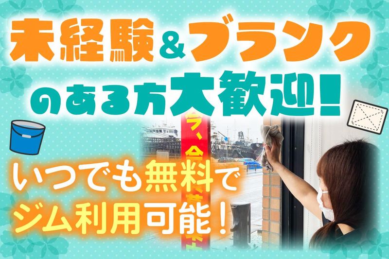 求めている人材 ✅未経験者大歓迎 ✅ブランクのある方OK ✅主婦(夫)・フリーター歓迎 ✅男女問わず活躍中 扶養内で働く方やWワークの方多数! 20代・30代・40代・50代と 幅広い年代が在籍しています♪ スタッフ特典として、施設を24時間 いつでも無料で利用できるため、 体力作りやダイエットを始めたい方にも◎ ~~~~~~~~~~~~~~~~~~ ▼活かせるスキル マンション清掃や夜間清掃、 マンション管理人、ベッドメイク、 ホテル客室清掃、ホテル清掃、 客室清掃スタッフ、施設清掃、 学校清掃、オフィスビル清掃、 病院清掃、住宅清掃、施設内清掃員 などスタッフの経験者は大歓迎です! (※いずれも必須ではありません)