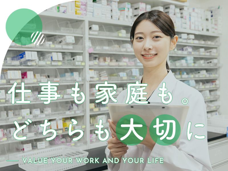 アピールポイント \働きやすさの秘密/ 01|スタッフ想いの環境 「誠実に、明るく、強く」を理念とし、 スタッフが心身ともに健康で働けるよう 待遇面も充実させています。 各種ワクチン接種代全額補助 マスク無料支給 薬剤師会入会希望時の会費支給 など、細やかなサポートがあります。 02|抜群の定着率 現在、男性1名・女性6名のスタッフが在籍。 20代~60代まで幅広い年代が活躍中ですが、 全員が穏やかな人柄で、チームワークは抜群。 「人間関係が良いから長く続けられる」 というスタッフが多い、落ち着いた職場です。 03|ライフスタイルに合わせて 「平日午前のみ」や「週30時間しっかり」など、 希望の働き方をご相談ください。 基本的には日祝休みなので、 ご家庭やプライベートとの両立も無理なく可能です。 ※年1~2回程度、休日当番があります。