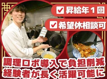 仕事内容 / 調理経験者は全員面接!中華以外の経験者も活躍中です* 「ここで働きたい!」と思える雰囲気の良さが魅力! \ 北海道各地で展開する中華料理専門店 「暖龍」において調理の仕事をお任せします。 今回募集する「暖龍平岡店」では配膳用のネコ型ロボットの導入など、 スタッフの負担削減のための施策にも多数取り組んできました。 そしてこの度暖龍全店及び「北海道」の飲食店で、 『初めて』自動炒め調理ロボを導入しました。 そのため、誰でも簡単に料理を作れるようになったため、 調理スタッフの負担を大幅に削減することに成功。 ・・・ですが、すべての調理を全自動化した訳ではなく、 機械で作った料理も最後に味を左右するのは 「料理人」の経験だと考えています。 負担を削減した分働きやすさと調理に専念しやすくなった暖龍平岡店で、 これまでの経験を活かして無理なく活躍をしてみませんか? 【具体的なお仕事は】 *各種調理業務、材料の仕込みや洗い物 *食材・在庫・冷蔵庫の温度管理 ・・・など <入社後の流れ(イメージ)> 入社初日~3ヶ月:レシピや中華鍋の扱い方を覚えるなど、暖龍での基本的な仕事を学ぶ。 入社3ヶ月以降:スキルに応じてお客様に提供する料理の調理を担当する。 入社1年目以降:1人前の中華料理人として調理とアルバイトスタッフの育成などを担当する。 *経験・能力に応じて業務をお任せしていきますのでご安心ください。 *頑張り次第で社歴を問わず、店長などのポジションをお任せする場合もあります。 中華料理店独自の調理方法もありますが、 基本的には一般的な調理・キッチンのお仕事なので、 中華未経験の方もご安心ください。 実際に現在暖龍で活躍するほとんどの調理スタッフは、 カフェなど全く異なるジャンル・業態での調理経験者ばかりです。 ゆくゆくはアルバイトのキッチンスタッフの教育などキッチンの管理業務もお任せし、 「料理長」のポジションを目指すこともできます。 <調理ロボ導入で誰でも「プロ」の味に!> 自動炒めロボはタッチパネルで作りたい料理を選択して、 必要な材料を機械に入れれば誰でも簡単にプロの味を作ることができる機械です! この機械を導入したため、<<負担は大幅削減!>> レシピ通りに必要な食材を入れるだけで、 おいしい中華料理を作ることができます! 食材をカットしたりと仕込みなどの調理補助のお仕事や 炒め物以外のラーメンなどの調理に専念できるため、 誰でも活躍できるお仕事となっています。 負担を削減した分、スタッフの残業の削減や より希望に沿ったシフトを作成できるようになりました。 結果としてスタッフが長く活躍できるお店 =安定して高品質な料理を出し続けられるお店となり、 より一層お客様にご愛顧いただけると考えています。 ー 【アナタの料理を楽しみにしている人がいます!】 暖龍は老若男女を問わず、幅広い世代のお客様にご来店いただいているお店です。 イオン店の中にあるお店のため、安定した来客数を誇り、売上も安定しています。 そんなお客様のためはもちろん、飲食勤務のメリット「まかない」を楽しみにする ちょっと料理にはこだわりがあるベテランの主婦さんやお腹を空かせた学生さんなど、 美味しいご飯を待っているスタッフのためにも腕を振るっていただけると嬉しいです! お客様からの「ご馳走様でした」もかけがえのない一言ですが、 仲間からの「ご馳走様!」「美味しかったよ!」の一言も格別なはず。 また、店長やマネージャーなどもアナタが作ったまかないを食べる機会があるため、 料理の実力をアピールするチャンスもありますよ! 【安心して料理に打ち込める環境です】 暖龍は月8日の休日の取得や残業時間の削減など労働環境の整備に注力し、 「飲食=ブラック」というイメージの払拭に取り組んでいます。 お店としてもスタッフ同士の「コミュニケーション」を大切にし、 「誰と働くか」を重視して日々営業をしています。 そのため、高校生~ベテランの主婦さんなど、幅広い世代が活躍するお店ですが、 世代や社歴に関わらず、全員が平等の立場で仕事をすることができています。 そして、実は意外とアルバイトから正社員になったスタッフが多いのも特徴の一つ。 正社員登用制度を活用して暖龍で頑張り続ける選択をした人が多数いることも、 人間関係を含めて働きやすいお店である証拠かもしれません。 また、コロナ禍でもシフトや給料カットをせず、尚且つ10名以上の採用をするなど、 不況を乗り越えた実績があるため、今後も安心して働けることをお約束いたします! 【アナタの「オリジナルメニュー」が暖龍で提供される!】 暖龍では通常のグランドメニューに加え、 月替わりメニューと店舗限定日替わりメニューも豊富に提供しています。 月替わりメニューは毎月各店舗の料理長が自信作を提案し、 採用されれば全道の暖龍にて提供されることもあります。 ただ機械に任せて、レシピ通りに料理を作るだけでなく、 「自