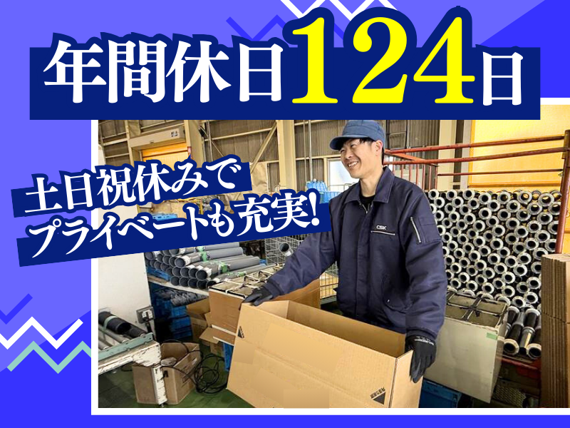 仕事内容 ✅残業代100%支給! ┗残業時間に応じて全額支給! ✅年間休日124日! ┗プライベートとしっかり両立! ✅昇給年1回!不定期の昇給もあり◎ ✅賞与年2回✨ ✅車通勤OK!駐車場も完備! ――――――――――――――――――― ■仕事内容 ――――――――――――――――――― 住宅設備に使用される 塩ビ配管部品(パイプ)の加工や梱包作業を お任せします! ◎具体的には… ・部品の加工業務 (パイプを温めて曲げる・接着剤でつなぐ等) ・製品の梱包作業 ・長さのチェック ・外観の目視検査 など 作業手順はマニュアルがあり、 流れに沿って進められる内容です。 アットホームな雰囲気で周囲に相談しやすく 落ち着いて作業に取り組めます。 ――――――――――――――――――― ■働いた分だけ稼げる。それが当社です。 ――――――――――――――――――― 当社はコツコツと作業に向き合い、 残業もしっかりあるため、 働いた分だけ稼げる環境です。 パイプの加工や梱包・検査など、 シンプル作業が中心。 マニュアルが整っているため、 製造現場の経験を活かしながら スムーズに慣れていけます。 アットホームな雰囲気で、 黙々と作業に集中できる環境。 年齢を重ねても続けやすく、 実際に30〜50代前半の方が 活躍している職場です。 「今より収入を増やしたい」 「現場経験を無駄にしたくない」 当社はそんな方もお待ちしています。 ――――――――――――――――――― ■活躍中のスタッフの声 ――――――――――――――――――― 前職では製造系で働いてきたけれど、 働き方改革などの影響で残業が減り 収入に物足りなさを感じていました。 しかしこちらの職場では 残業などでしっかり稼ぎたい人を 受け入れてくれる環境があり、 おかげさまで今は安定して働けています。 作業内容は分かりやすく、 マニュアルもきちんと整備されているので 意外とすぐに慣れました。 分からないこともすぐに聞けて、 黙々と集中できる環境だと思います。 同世代の方も多く、 安心して続けられています。 「今度こそしっかり稼ぎたい」 そんな想いを叶えられる職場だと 感じています。 (30代スタッフAさん) ――――――――――――――――――― ■当社について ――――――――――――――――――― 株式会社CSKは安全・安心な環境づくりに 配慮し、お客様の価値創造を通じて社会に 貢献することを大切にしている会社です。 行動指針は 【いい会社であり続ける】こと。 関わるすべての人から 「いい会社」と思ってもらえる 企業を目指しています。 社員が安心して働けるよう、 環境づくりにも注力。 育児休業制度の充実など、 ライフステージが変わっても 働き続けやすい職場を整えています。 仕事と生活どちらも大切にしながら、 長く働ける環境です。