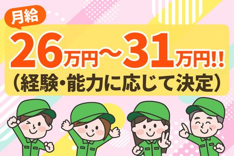 月給260,000円~310,000円 給与 月給 26万円~31万円 (一律手当を含む) ・昇給有 ・欠勤控除有り(日給月給制) 交通費:通勤交通費全額支給 ・6か月通勤定期代として支給 ・バイク通勤可(許可制 ※車通勤をご希望の方もご相談下さい) 【給与例】 給与例 *管理職候補の募集 ⇒管理職に昇進したら、役職手当あり! <管理職に昇進した場合の収入例> 月収40万円 (月給30万円~+役職手当など各種手当)