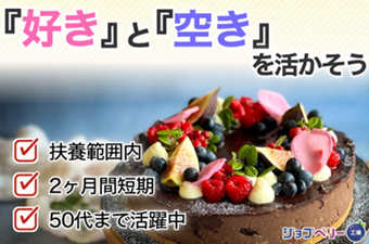 仕事内容 \\午前中だけ働きたい//【空いてる時間を有効活用♪】★扶養範囲内で働きたい方大歓迎★短期★軽作業!未経験から始められるお仕事♪ <仕事内容> (1)ケーキのトッピングや盛付けのお仕事 テーブルで何名かのグループでケーキにトッピングや盛付けをしてもらいます。 決められた量をすべて同じようにお願いします。 最後の工程の方はトッピングや盛付けが崩れないように、水あめを薄くぬります。 (2)オーブンを使用しての生地作り 決められた分量を測り枠に生地を流し込みます。 枠をオーブンへ投入。 オーブンから取り出した生地を、枠から外し生地が冷めるまでパレットで指定の位置に置いてもらいます。 (3)空き時間には調理器具などの清掃や片づけをお願いします。 立ち作業です。 《職場環境》 外国籍の方活躍中! ●オーブン周りは暑いのでスポットクーラーあり。 ロッカー有り|休憩室完備 アピールポイント <仕事内容> (1)ケーキのトッピングや盛付けのお仕事 テーブルで何名かのグループでケーキにトッピングや盛付けをしてもらいます。 決められた量をすべて同じようにお願いします。 最後の工程の方はトッピングや盛付けが崩れないように、水あめを薄くぬります。 (2)オーブンを使用しての生地作り 決められた分量を測り枠に生地を流し込みます。 枠をオーブンへ投入。 オーブンから取り出した生地を、枠から外し生地が冷めるまでパレットで指定の位置に置いてもらいます。 (3)空き時間には調理器具などの清掃や片づけをお願いします。 立ち作業です。 《職場環境》 外国籍の方活躍中! ●オーブン周りは暑いのでスポットクーラーあり。 ロッカー有り|休憩室完備 \充実した福利厚生/ ◎残業手当 ◎交通費支給(規定内) ◎週払い制度(週3回対応) ◎職場見学あり ◎車(マイカー)・バイク通勤可(無料駐車場あり) ◎制服貸与 ◎ロッカー・休憩室利用可 ◎福利厚生プログラム (宿泊、グルメ、ショッピングなど大幅割引が受けられる10万アイテムのメニューがあります。)