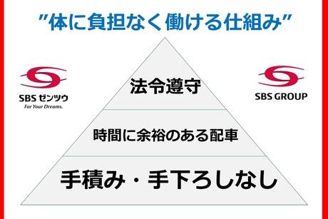 仕事内容 <顔を合わせるのは点呼や出発の時だけ>だからこそ! 笑顔であいさつ、声を掛け合う、いたわり合う 些細なコミュニケーションを大事にしています。 出発すると基本ひとりの時間のため、 ちょっとした会話が嬉しかったりする。 「体調大丈夫? 最近元気?」 そんな言葉があると、ふっと心がほぐれます。 ドライバーの体調は安全の土台ですから。 孤独にならず、マイペースで働けるのが うちの良いところ! 仕事内容は・・ ◎ 近県への配送 ・1日1~2便で、静岡~関東エリアをお願いします ・走行距離は1日150~500km(コースによる) ◎ 運ぶものは冷凍食品 ・荷物の量が安定した食品物流 ・長く続けやすい魅力の1つです <体への負担はできるだけ少なく> つらい手積み・手下ろしナシ! 体がラクだから、運転に集中していただけます。 また、時間に余裕のある配車も強み。 支店長がドライバーを思いやる風土だからこそ! せかせか・ギスギスさせません◎ 30~50代と年代も幅広く在籍しており、 女性ドライバーも2名が活躍中! もちろん外泊が必要なコースもないので、 毎日自宅でリフレッシュできる大型ドライバーです。 ドライバーは30~50代が活躍中です! 充実した待遇で働きやすい環境です。 フォロー体制も万全です。充実の研修制度が魅力! 初任運転者指導研修、同乗研修(2~3週間)、運転未経験者研修(3日程度)など、 イチから学べる環境が整っているため、 ドライバー未経験の方や、ブランクのある方も 安心してスタートすることが可能です。 ◎ ベテランによる同乗研修が好評 ・丁寧な座学・同乗研修に自信あり! ・未経験者は座学と同乗を合わせて1カ月程度、経験者は2週間程度 ・1人立ちできるまで、トコトン教えます ・新入社員から「安心する」とお声を頂いてます ・もちろん大型免許取り立ての方でもきちんと指導します! ◆ 気づけば釣り仲間に ◆ 社内に釣り仲間がいる社員もいたり、 人間関係の良さはゼンツウならでは! 八王子、昭島、立川、多摩などから 通勤されている方が多いです。 仲間想いで面倒見が良く、 遅れて帰ってきた人を手伝ったりも◎ ◎ 現場のYouTube動画です。ぜひご視聴ください! https://youtu.be/BOmaJBcAkpE?si=ObJUnXBMMV3r6IHN <上場企業ならではの強み4つ> 1.全国に物流拠点!年商230億円超 ・安定した実績で賞与も支給! ・念願のマイホーム購入や海外旅行も ・東証プライム上場SBSグループの安定・安心感! 2.従業員の安全第一! ・「働きやすい職場認証」「Gマーク」取得済 ・ドライブレコーダー、衝突軽減ブレーキ完備 3.毎日安定した配達量で不安なし ・生協の配送がメインで、市況に左右されない業務量 ・食品物流は生活に欠かせない分野です ・食いっぱぐれはありません 4.運行管理者資格などの資格取得支援制度あり ・ドライバーから管理職になられる方も!