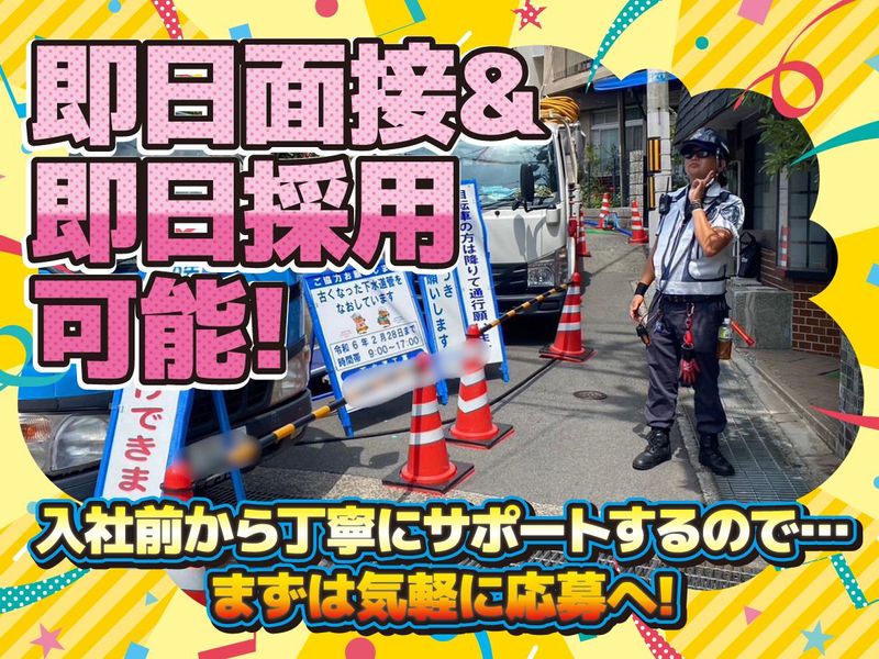 【保険制度】 雇用保険、労災保険、健康保険、厚生年金 待遇・福利厚生 【福利厚生】 ✨\仕事を始める準備不要/✨ 制服・無線・装備品など 必要なものはすべて無料貸与! 防寒着など季節ごとに 快適に着れる服をご用意しています! また、 【髪型・髪色・ピアス・ひげ自由】! どんなに派手でもOK! アクセサリー・タトゥー・ネイルもOK! お仕事をするために わざわざ黒染めしたり ネイルを落としたりする必要ナシ! ありのままの姿で すぐに働きはじめられます! ✨\昼食代が浮くチケット支給/✨ 食事チケット制度をご用意! 月1回、専用カードに 電子マネーでチャージし コンビニ・ファミレスなどで 使えるチケットです! 会社が食費を半額負担! ※週4~6日勤務:月3780円分 →実質7560円分を半額で! ※その他:月1980円分 ✨\待遇もサポート体制も充実/✨ ★ キャリアアップも応援! ▶資格取得支援あり ▶社員登用実績あり(最短半年) ★ 安心のサポート制度 ▶会社負担の健康診断(年1回/規定) ▶社会保険完備(規定) ▶社宅あり(規定) ★育成サポート ▶現場前研修あり ▶現場では先輩が横で指導 ▶独り立ち後のフォロー体制も万全 ▶現任教育:年1回・10時間あり