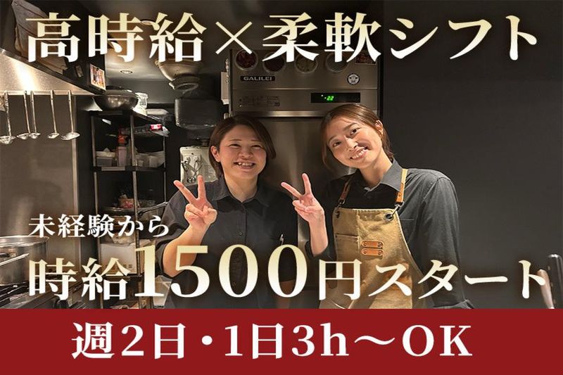 シフト制 勤務時間詳細 17:00~23:00 \ライフスタイルに合わせて柔軟に働ける♪/ ・週2日~、1日3h~OKだから学業やプライベートとも両立しやすい! ・2週間ごとのシフト提出で予定も立てやすい◎ ・シフトは柔軟に対応!終電も考慮します♪ ・Wワークやフルタイムも大歓迎! ・有給休暇ありで長期的にも働きやすい☆