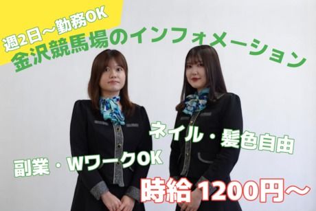 仕事内容 日・火のみOK!マナーが身につく♪インフォメーションスタッフ 主な仕事内容は・・・ ・フロア内のご案内 ・忘れ物や落とし物などの受付 ・備品の貸し出しやイベントのお手伝い …など 競馬の知識がなくてもできることばかりです。 9割の方が競馬未経験からのスタート! 私たちと楽しく仕事をしましょう♪ ★遅い時間のみ入れる方歓迎 ★不都合日申請有(1か月毎) ★時間や曜日は応相談 #接客スキルを活かせる・学べる*初心者大歓迎 「接客はしたことがない」「久々のアルバイトで不安」 大丈夫です!笑顔で挨拶するところから始めましょう 慣れるまでは必ず先輩か社員がフォローにつきます。 分からないことは遠慮なく聞いて下さいね。 「コインロッカーはどこ?」「おむつ替えスペースはある?」等の案内から 表彰式のアシスタントなど競馬場ならではのお仕事も! #家事も推し活も勉強も、何でもやりたい方に★ 週2日~勤務OK!6~7時間程度の勤務。 本場の開催日のみ(週2回)の勤務も大歓迎!(曜日は応相談) レースは数か月先までスケジュールが決まっているので 旅行などの予定が立てやすいのも嬉しい◎ 毎月お休み希望がだせるので、テスト期間や帰省時もあんしんです。 先輩スタッフの声を紹介☆ 「朝は忙しいが昼からは落ち着いて仕事ができる」 「競馬の知識が豊富になり仕事が楽しい」 「立ち仕事が少なく体への負担も気になりません」 「表彰式のアシスタントは滅多に経験できないので楽しい」 「スタッフは基本2名で対応するので困ったことがあったら協力して対応しています」 立ち居振る舞いやマナーが身に着くおシゴトです。