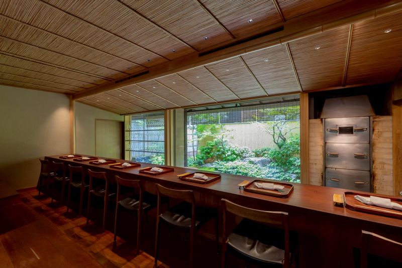 職場環境 四条烏丸に近い住宅地に位置するこの店舗は、美しい四季折々の庭園が広がる大きなガラス窓を備えています。 「今まで培ったモダンチャイニーズの経験を活かしつつ、自分らしい遊び心あふれる軽やかな広東料理を提供したい」(byオーナー)