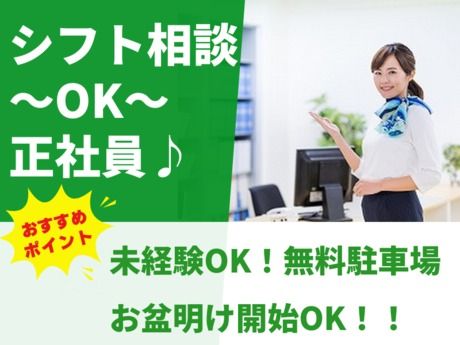 【保険制度】 雇用保険、労災保険、健康保険、厚生年金 待遇・福利厚生 【福利厚生】 ■正社員/雇用期間の定めなし ■試用期間/あり(3ヶ月) 試用期間中の労働条件/同条件 ■車通勤OK(無料駐車場あり) ■制服貸与