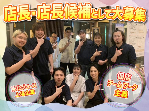 仕事内容 【お仕事内容詳細】 店長候補として… *お客様対応などサービス業務全般 *店舗運営や売上の管理 *マネジメント …など 多岐に渡るお仕事をお任せします! 【飲食業界経験者は是非!お店作りはスタッフ次第】 ジェイグループホールディングスは、チェーン店と異なり、各店舗のスタッフにできるだけ裁量を与えています。 ”個人店”に近い感覚でお店の運営ができるため、マニュアルにとらわれることはありません。 各店舗のカラーを活かして、業態やお店の雰囲気を作り上げることが可能です。 「こんな内装があったらお洒落だな」 「新しいメニューを考案したい!」 「こんなサプライズってどうだろう?!」 など、スタッフとアイデアを出し合い、協力し合いながら、輝くお店作りをお願いします* 上場企業の安定を感じながら、自由度高く店舗運営が出来ると思います! 【充実待遇!働き甲斐と給与が連動】 *昇格・昇給あり!(年2回、3月・9月に査定あり) *決算賞与年1回 (業績連動!) *役割手当、配偶者手当、誕生日手当、スーパー店長手当など…各種手当充実 頑張った結果が給与に直結するので、働き甲斐にもつながります! *お店について* 寿司と串揚げをカジュアルに楽しめる、寿司居酒屋です! 寿司は市場直送の鮮魚を使用しており、しゃりは米マイスターが特別にブレンドしたお米に赤酢を使用したすし酢をあわせたやんわり江戸前風です。 串揚げは心を込めて毎日手打!見ても味わっても楽しめる料理を提供しています♪