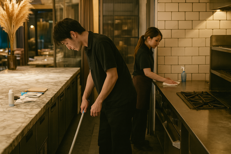 仕事内容 \未経験からスキルアップを目指せます!/ 飲食店をキレイに保つ大切な仕事♪ 正社員【清掃スタッフ】募集! 飲食店の営業終了後に、店舗の清掃を行い 「安心して翌日を迎えられる環境」を整える仕事です。 安定成長を続ける当社で、新しい仲間を募集中! ━━━━━━━━━━━━━ 【具体的な仕事内容】 飲食店を巡回し、 ・厨房や床、テーブルなどの清掃 ・食器洗浄、片付け などを担当。 日頃の家事に近い作業が中心なので、 未経験からでもすぐに慣れていただけます。 最初は先輩が同行し、 流れを丁寧にお伝えするので安心! 【キャリア形成】 スタッフとして経験を積んだ後は、 リーダー、管理職へとステップアップ可能。 長く働きたい方にもピッタリです。 ━━━━━━━━━━━━━ 【こんな方におすすめ】 ☑ 掃除が得意・好きな方 ☑ コツコツ取り組むのが得意な方 ☑ 人の役に立つ仕事にやりがいを感じたい方 成長中の清掃サービスで、 飲食店の“縁の下の力持ち”として活躍しませんか? ━━━━━━━━━━━━━ 【職場について】 スタッフ一人ひとりの声を大切にしながら、 働きやすい環境づくりを進めてきました。 その結果、多くのスタッフが 長く続けてくれています! 柔軟なシフトやサポート体制が 整っているため、 長く安心して働けます。 「安定」も「やりがい」も 両方手に入る環境です。 ━━━━━━━━━━━━━ 【社員インタビュー】 ◆本部スタッフ(30代) 前職はホテルの料理人。 コロナ禍で勤務先が閉館となり、 転職を決意しました。 「飲食に関わり続けたい」 という想いから当社に入社。 最初は戸惑いもありましたが、 様々な店舗や人と関わる中で 刺激的な毎日を送っています。 基本的に1人で作業するため、 人間関係のストレスも少なく、 集中して働ける環境。 さらに、頑張りを しっかり評価してもらえるので やりがいを感じています。 「ありがとう」の言葉をいただけるたびに、 この仕事を選んで良かったと実感しています。 ━━━━━━━━━━━━━ ※勤務地は契約先になります