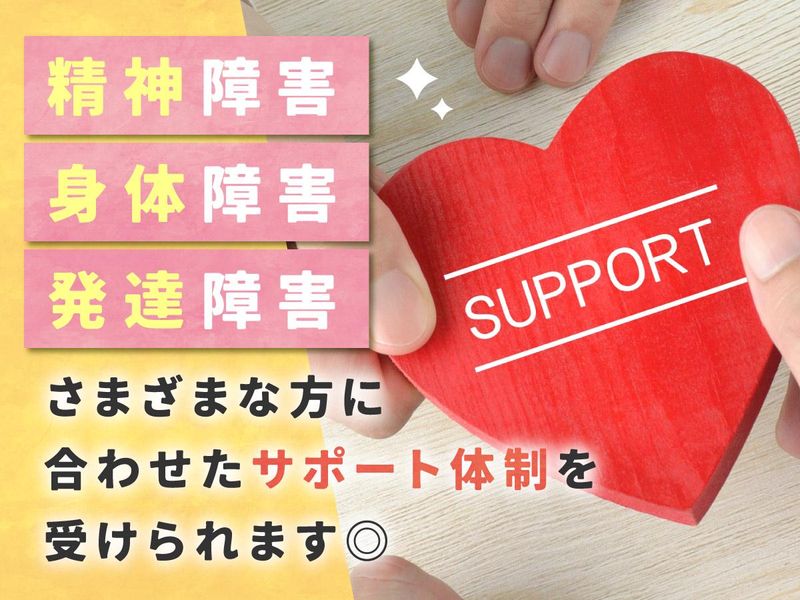 仕事内容 障害者雇用から正社員登用の実績あり 月収19万円以上も安定して稼げます ■事故などの影響で一般就労が 難しくなってしまった方など まずはお気軽にご相談ください。 「隠して働き続けるのは辛い」 「障害者雇用は給料が安そう」 「一般就労の経験しかない」など 精神障害、身体障害、発達障害、 様々な障害をお持ちの方活躍中 【月収19万円~ も可能です】 ―――…―――…―――…―――…――― <問題は一緒に乗り越えよう> *緻密な作業や細かい作業は難しい *パソコンなどの操作が好きではない *ジッと座るだけはニガテ など。 それぞれの特徴に合わせた 働きやすい方法を考えます! <得意な事をしっかり活かせる> *体力や運動には自信がある *集中する作業も得意 など。 一般就労でも働けるレベルだけど、 障害をオープンにして無理なく働きたい そんな方でも"できること"を強みに 一般就労水準の安定収入を実現できます。 ■最大限の福祉を受けながら■ ■最大限の能力を活かせます■ ―――…―――…―――…―――…――― 【相談だけでも歓迎します】 まずはご連絡ください◎ 「どの種類の手帳でも働ける?」 「こんな障害でも大丈夫?」 「作業は難しい?」などなど 興味はあるけど不安な事や 働いてみたいと思うけど、 何からすればいい?という方! まずはお話しませんか? お悩みごとや希望の働き方を 聞かせてくださいね♪ ―――…―――…―――…―――…――― 【おまかせする仕事】 チルド倉庫内で出荷作業をおねがいします ※スーパーなどに並ぶ食料品全般を扱います ・出荷先ごとに商品をピッキング ・商品のバーコードを読み込む ・商品をしっかり検品して梱包 ・商品を大きなカゴに積み込んで トラックの近くまで持っていく 複数の仕事から得意な作業をお任せ。 ひとつずつ丁寧にレクチャーします! ◎まずは見学もOK! ―――…―――…―――…―――…――― 障害のあるご本人様に代わって お仕事を探しているご家族様や ご友人の方からのお問い合わせも歓迎します 障害者の方でも長期で安定して 働ける環境を整えています。 派遣先で正社員としての直雇用実績もあり ゆくゆくは直接雇用を目標に支援をしています ===< 就労支援へのこだわり >=== 当社代表は、以前派遣会社で働いていました。 その中で、障がいを抱えながら働く方が、 障がいを隠さざるを得ず理解を得られずに 離職してしまう現状を 何度も目の当たりにしてきました。 「障がいを隠さず、安心して 働ける環境をつくりたい」—— そんな想いから当社を設立。 当社では、企業と協力しながら、 障がいのある方が必要な支援を 受けつつ働ける仕組みを構築しています。 一人ひとりの状況に合わせたサポートで、 ステップアップも将来の安定も目指せます。