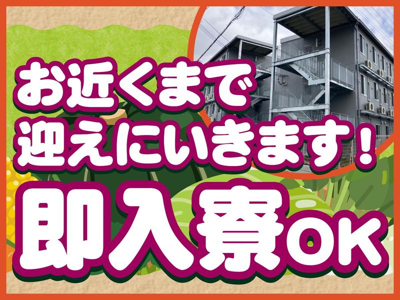 仕事内容 ■ご担当いただく業務内容 ・野菜や果物の仕分け ・箱詰め・梱包 ・作業場の清掃や整理整頓 シンプルな作業ばかりなので、 未経験の方もすぐに慣れていただけます。 【 シニア世代も安心して活躍中 】 60代・70代から始めた方も多数! 「年金+αで少し収入がほしい」 「体を動かして健康を維持したい」 そんな方にピッタリの職場です。 【 抜群の厚待遇 】 ★日払いOK!頑張って働いた分はきっちり給料日にお支払い! ★個室寮完備(3食・家具・Wi-Fi付き) ★身分証・履歴書不要 ★お近くまでのお迎えも可能です ★未経験から始められる“発掘サポート” ★早ければ17時前に終わる日もあり ★ほぼ残業なし ★週休2日制でムリなく続けられる 【 生活面も安心!個室寮完備 】 家具・Wi-Fi付きの個室寮には、 朝昼晩の3食も完備しており、 光熱費もかからないので 生活コストを抑えて働けます。 寮仲間との交流や、 自由な時間も充実しています。