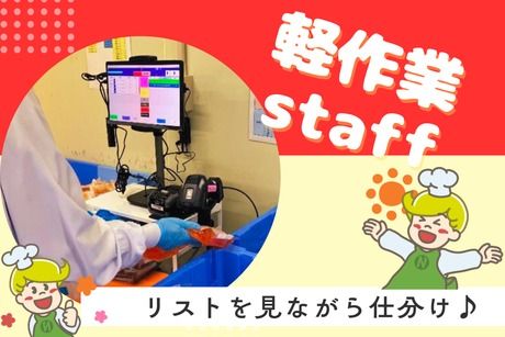 仕事内容 \食品工場での仕分けスタッフ/ 介護福祉施設向けのお食事を作る食品工場にて『仕分け・ピッキング・検品』のお仕事。 完成されたパック詰め食品を配送先ごとにピッキング・ 袋詰め・シール貼りなどをお任せします。 完成した食品を出荷するまでの一連の作業です。 出荷の優先順位を決めて朝食用・昼食用・夕食用とチームで連携して進めていきます。 具体的には・・・ 主に以下をお任せします! ・製造された商品を配送先ごとに仕分ける ・機械にて仕分けられた商品を袋に詰める ・仕分けられた商品のQRコード(バーコード)を機械に通し、 個数などに問題がないか確認する ・商品をコンテナに詰めて出荷場所まで運ぶ など ※寒く感じる方には、マスク、手袋、 防寒着を無料貸与 <正社員登用制度あり> ・40~50代からも正社員へチャレンジ可能! ・ゆくゆくはキャリアアップをお考えの方! 【直近1年の実績】 6名(20代2名/30代1名/40代1名/50代2名) ※登用枠は職種、組織戦略による <入社お祝金制度あり> 3ヶ月勤務いただいた感謝の気持ちを込め、 入社3ヵ月経過後、入社お祝い金として 『1万円』が支給される制度です。 ※支給時期は社内規程による。 <こんな経験を持った方が活躍中> 給食サービスをはじめ、さまざまな職種の 経験者が集まっています。 社員食堂や職員食堂での勤務経験がある方や、 学校給食や施設内厨房で働いていた方々も多数在籍しています。 また、物流倉庫内での軽作業や 工場内での軽作業の経験者、 物品管理や工場作業に携わっていたスタッフもいます。 \スタッフインタビューをご紹介/ “休み”と“給料”の両立 前職で「給料」「休み」「安定」などの不満を抱えていたところから転職してきました。 当社では年間休日120日&希望休が通りやすいシフト制度を実現しており、 プライベートと仕事のバランスを大切にしたい方にぴったりです。 仕事はシンプル&集中できる 日々の業務はスキャナーで商品を読み取って仕分けする作業が中心。 落ち着いた雰囲気の現場なので、 初めての方でも取り組みやすく、丁寧に教えてもらえる環境です。 より詳細な内容は、下記URLから! https://www.narikoma-group.co.jp/recruit/recruit/blog-12444/